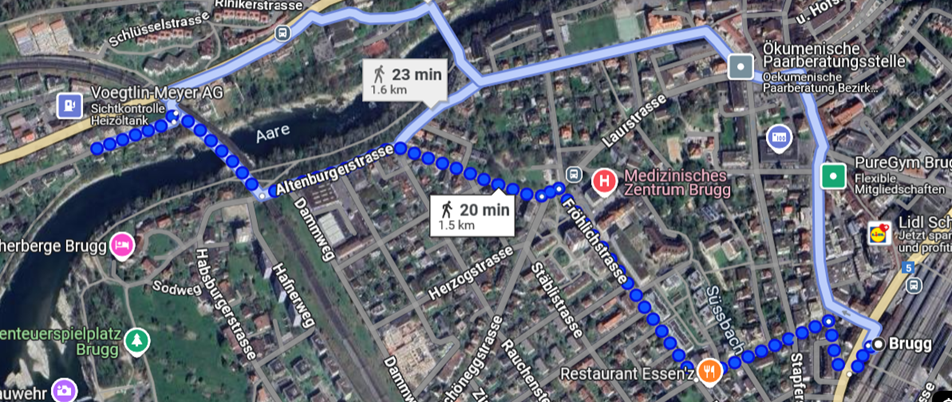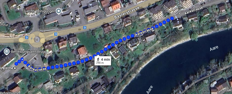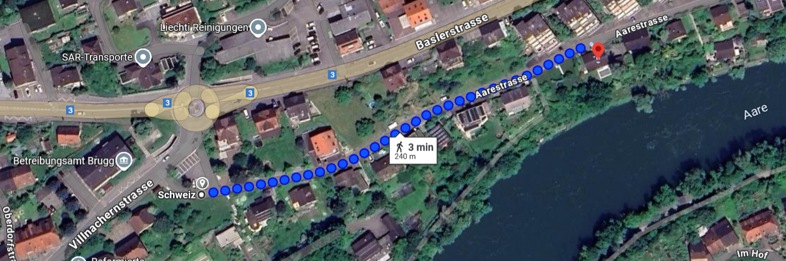 Zu Fuss 20 Minuten von Brugg Bahnhof